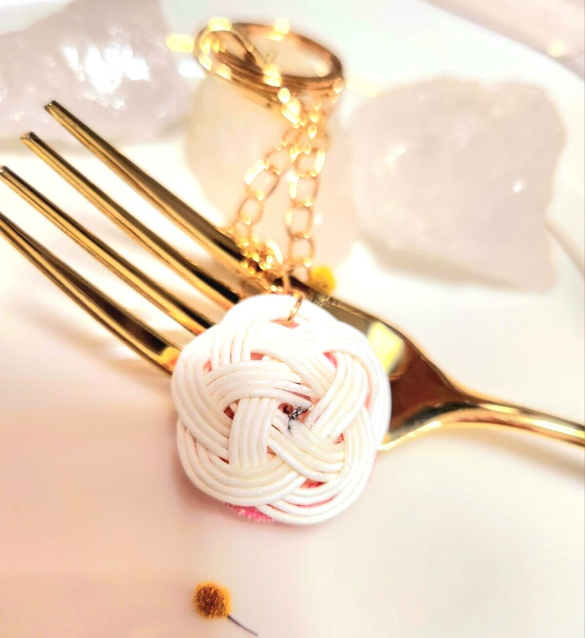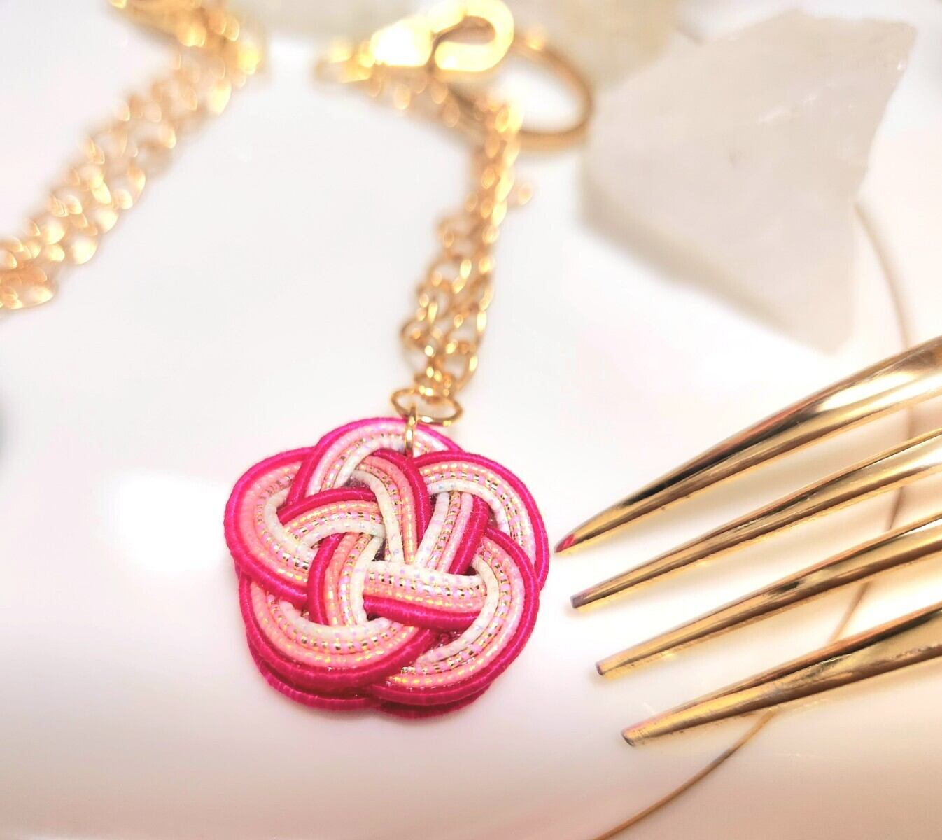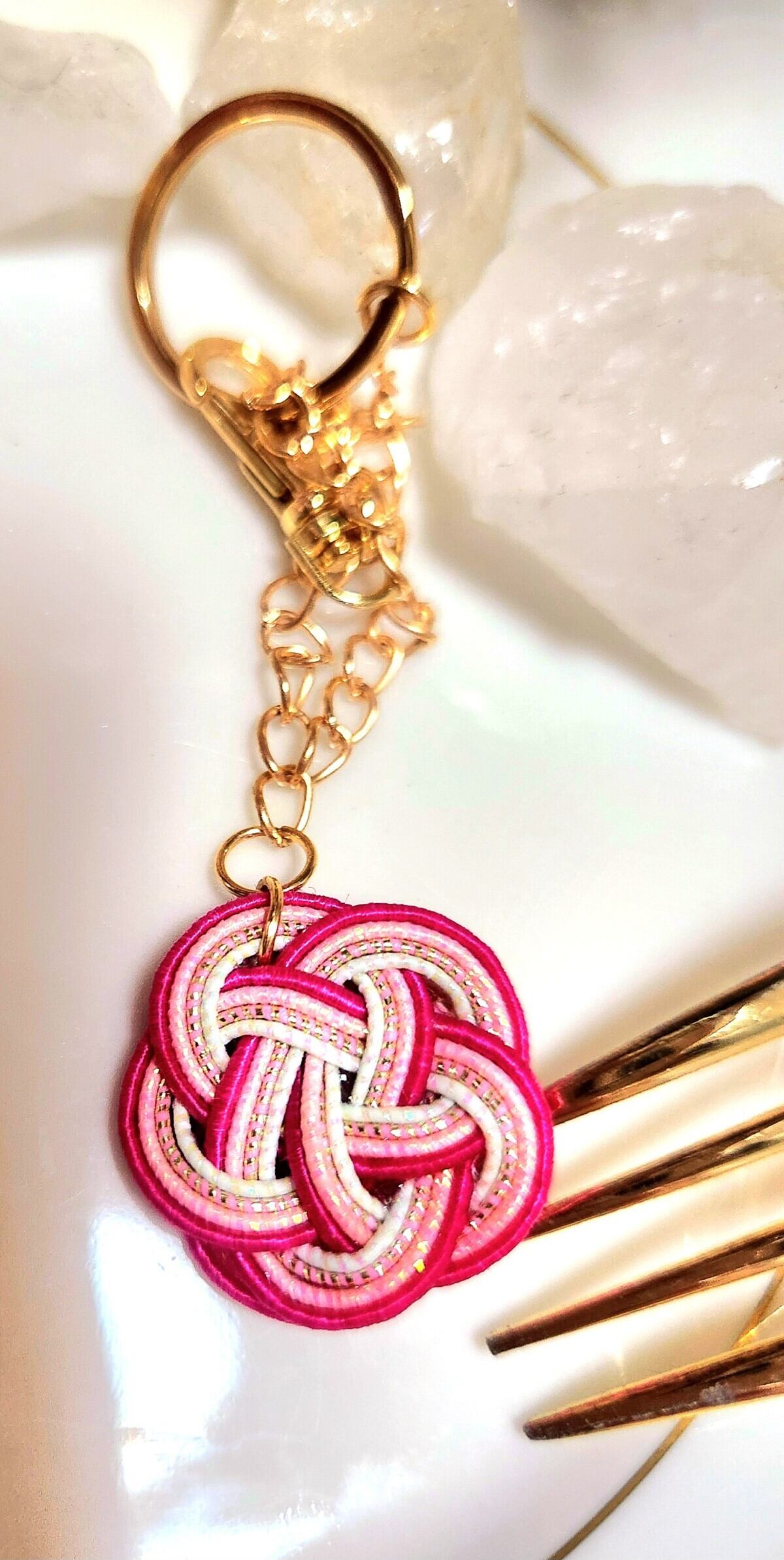 ピンクと白が織り交ぜられた結びは、持ち主の心に温かさと安らぎをもたらします。